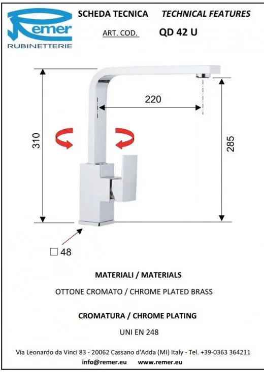 Смеситель для кухни Remer Q-design QD42U, хром