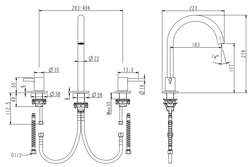 Гибкие шланги подачи воды с компрессионными фитингами 1/2”