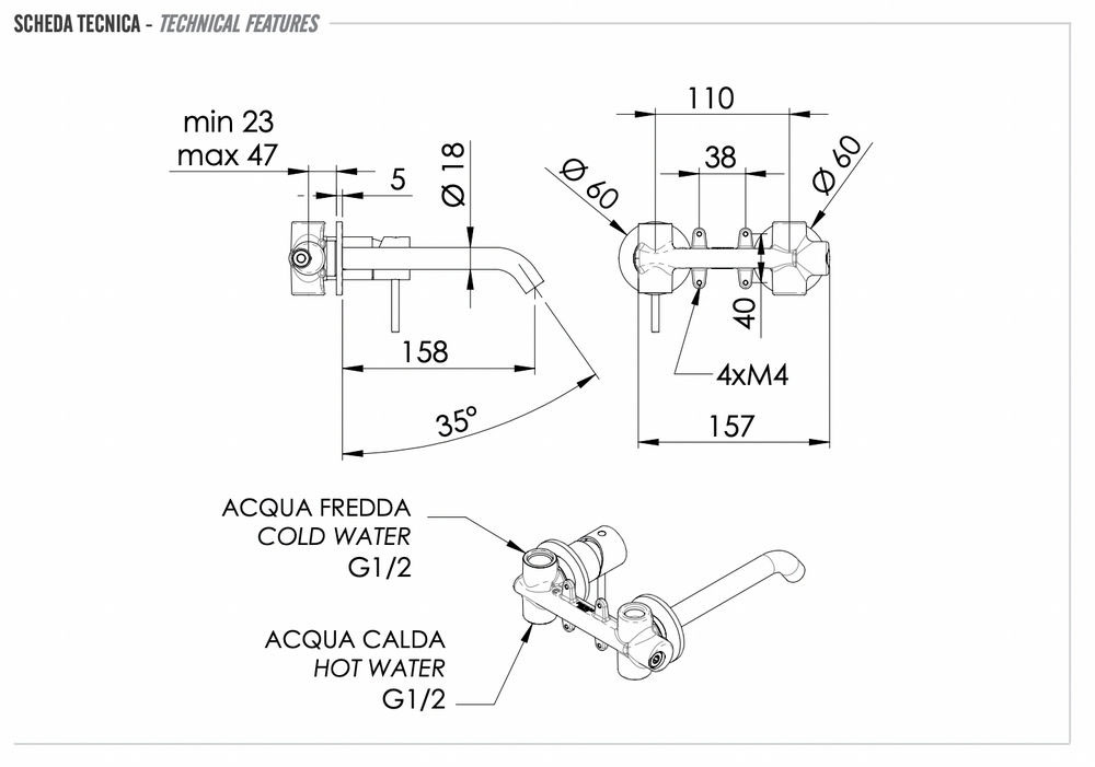 Смеситель для раковины Remer X Style INOX SSX15P, нержавеющая сталь