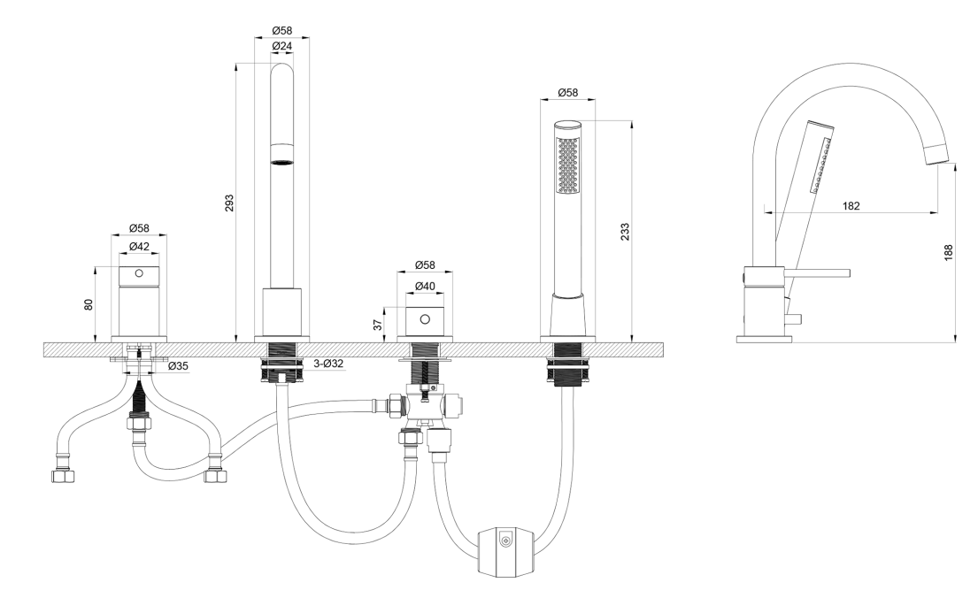 скрытая часть, ручной душ, шланг 150 см, держатель лейки, монтажный комплект |