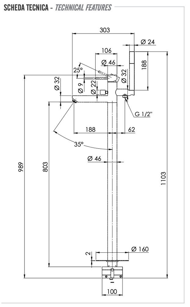 Смеситель для ванны Remer Minimal N08VO, бронза