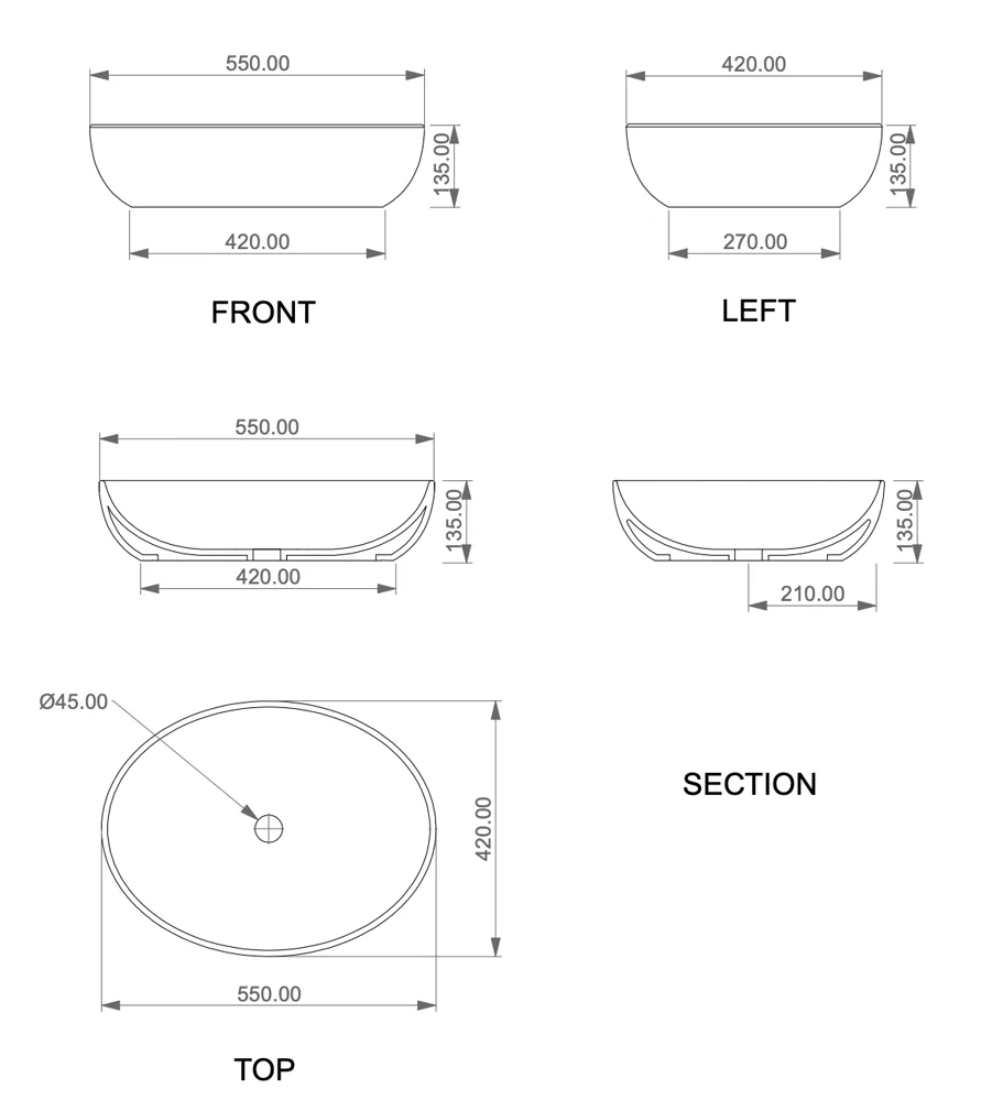 Раковина GSG Ceramic Design Easy EALAVOV55BI000/028, White/Ebano Matt