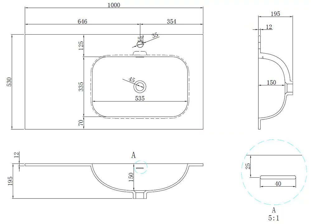 Раковина из материала Corian для серии мебели Elise