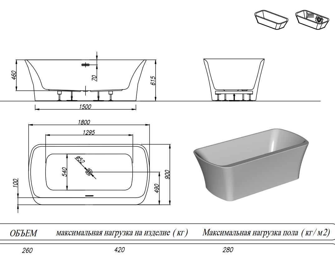 Важно! В указанную стоимость входит собранная ванна на каркасе, с установленным сливом-переливом в цвете хром.