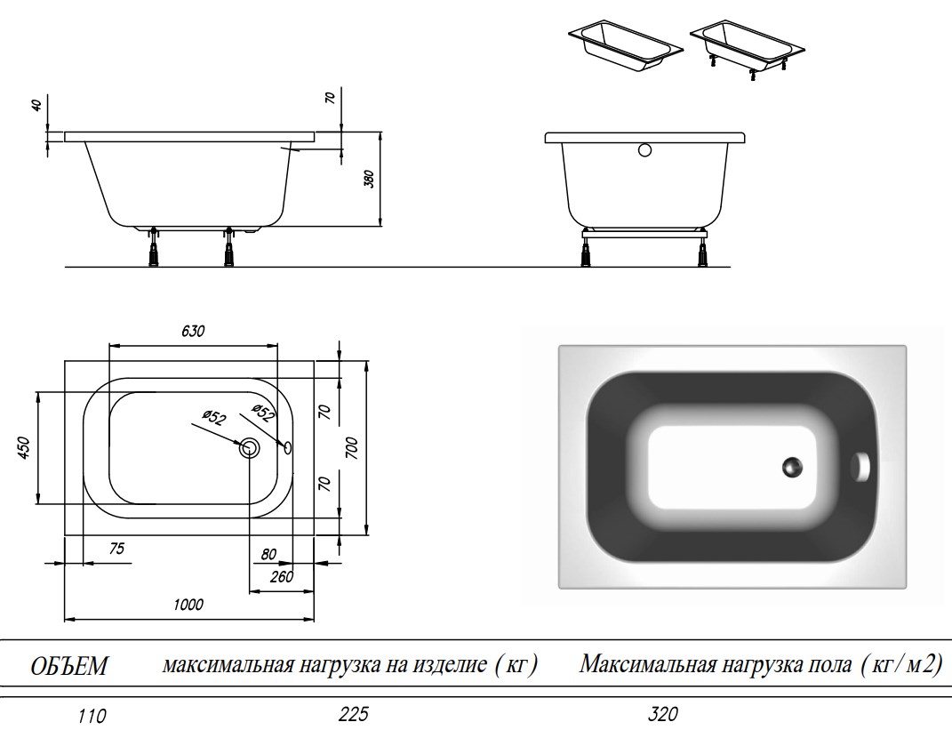 Несмотря на свои скромные размеры всего 100x70 см c глубиной 38 см ванна MINI обладает важным достоинством - правильной геометрией, облегчающей установку и эксплуатацию.