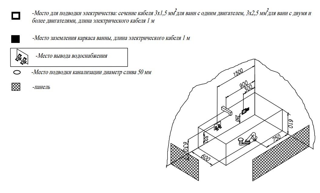 Ванна изготовлена из высококачественного акрила Lucite с толщиной листа не менее 4 мм, имеет безупречный внешний вид и долгий срок службы.