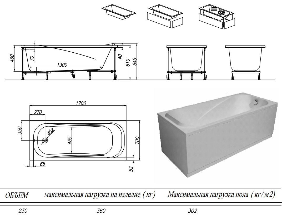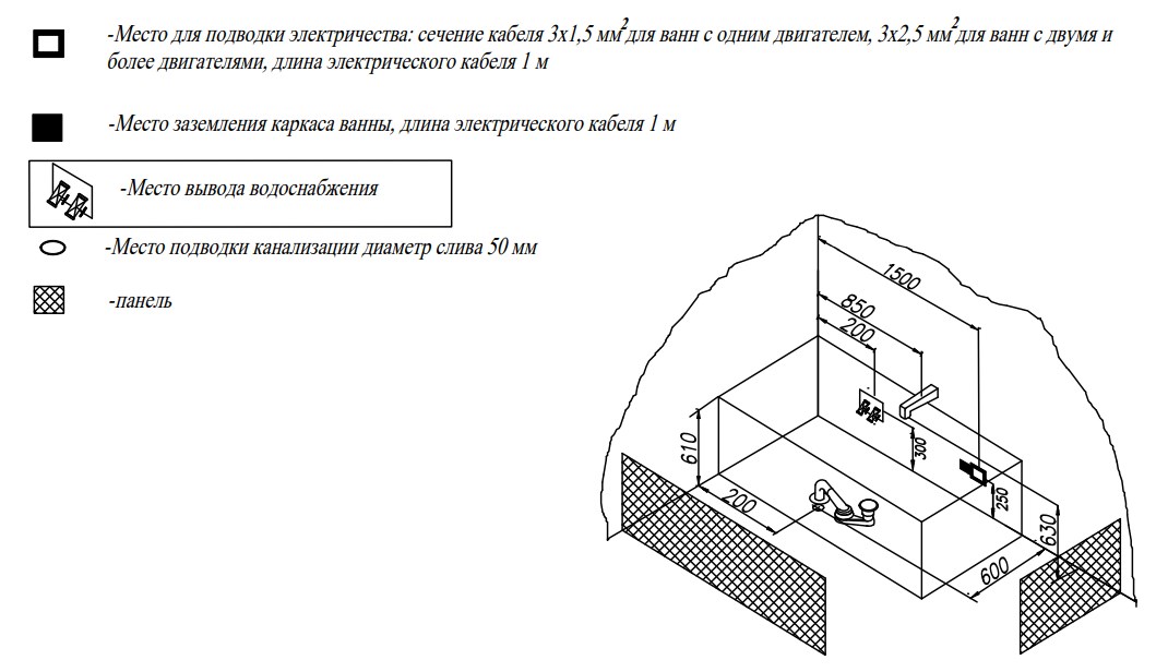 Ванна изготовлена из высококачественного акрила Lucite с толщиной листа не менее 4 мм, имеет безупречный внешний вид и долгий срок службы.