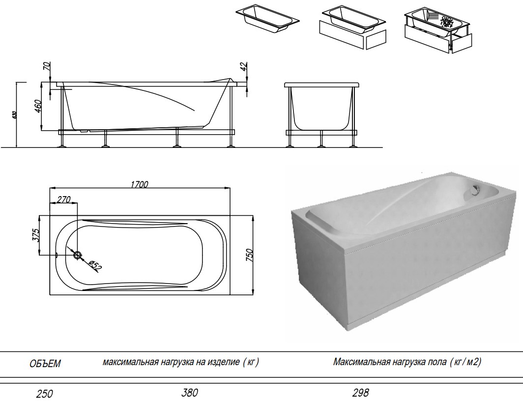 Ванна изготовлена из высококачественного акрила Lucite с толщиной листа не менее 4 мм, имеет безупречный внешний вид и долгий срок службы.