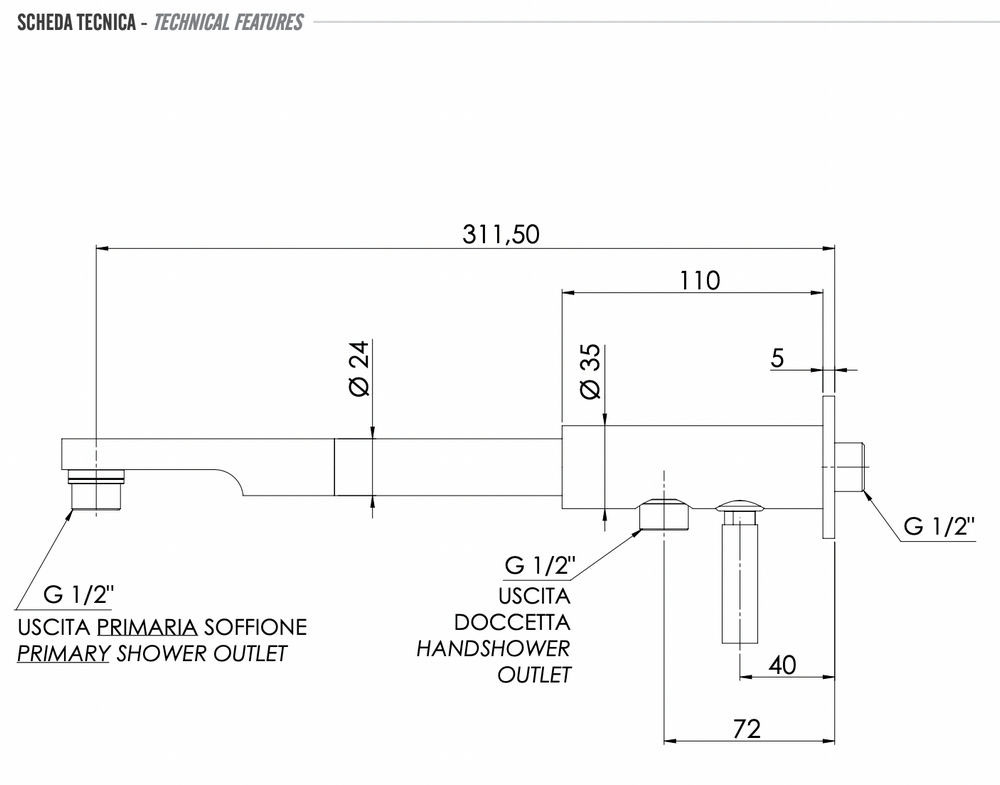 Кронштейн c дивертером 30 см Remer N348N30ND