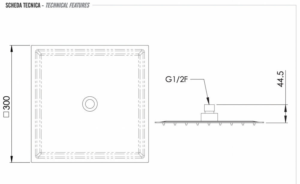 Верхний душ с шарнирным соединением 30 см Remer INOX SS357UFS30X, нержавеющая сталь